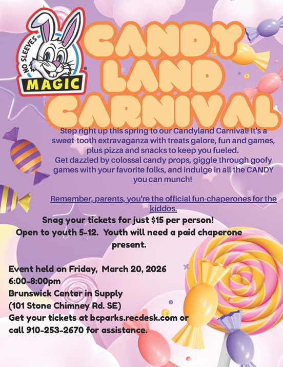 Event will be held on Friday MARCH 20, 2026 at the Brunswick Center at Supply. (101 Stone Chimney Rd).