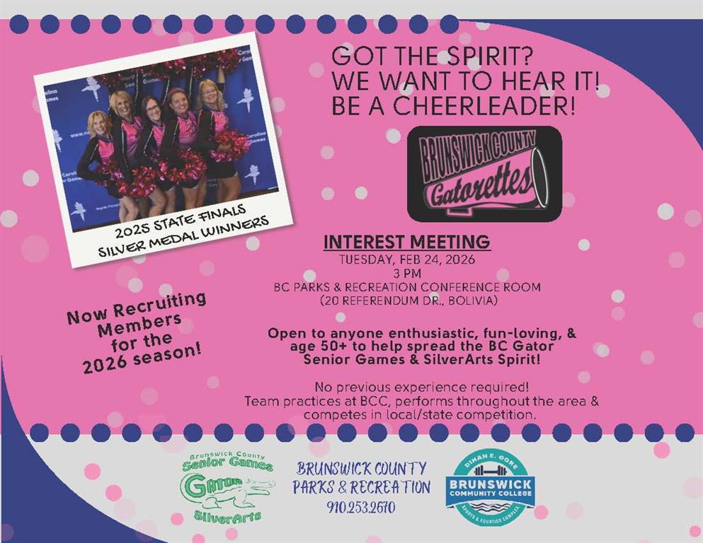 To see complete information and all events to choose from please check out the information flyer below. If you would like to speak to someone about this program please call Khrystye Haselden at 910-253-2677 or email her at khrystye.haselden@brunswickcountync.gov